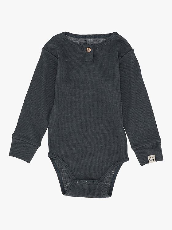 Denne bodyen er i et herlig ribbestrikket materiale, som vil oppleves mykt, behagelig og pustende. Den ribbestrikkede kvaliteten gir god stretch og super holdbarhet vask etter vask. Treknapper i front og trykknapper i bunnen av body. Kombiner gjerne med Billie Ullbukse til baby for et komplett antrekk!