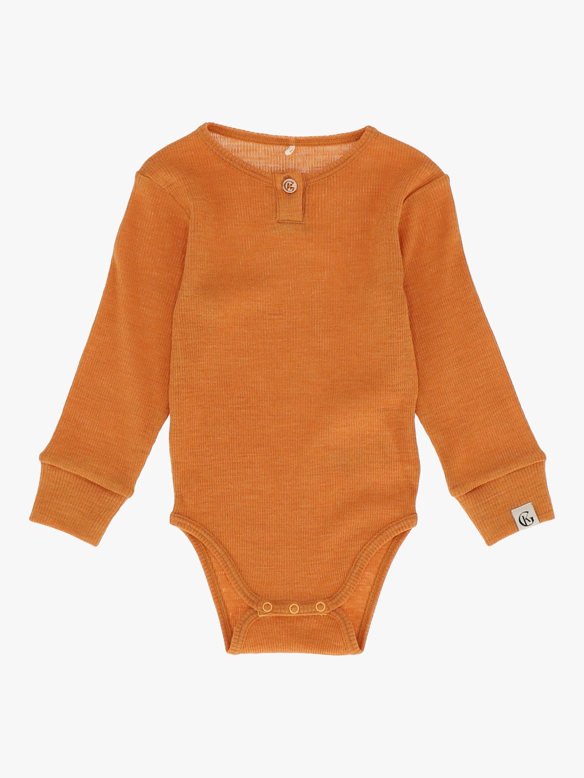Denne bodyen er i et herlig ribbestrikket materiale, som vil oppleves mykt, behagelig og pustende. Den ribbestrikkede kvaliteten gir god stretch og super holdbarhet vask etter vask. Treknapper i front og trykknapper i bunnen av body. Kombiner gjerne med Billie Ullbukse til baby for et komplett antrekk!