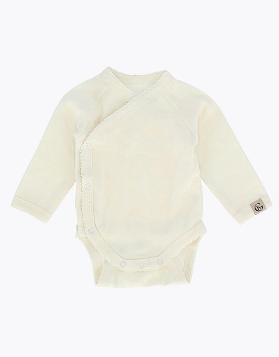 En nydelig omslagsbody for de aller minste, laget i en myk og pustende bomullskvalitet som føles behagelig mot sart babyhud. Det praktiske omslagsdesignet gjør påkledningen enkel og komfortabel, og kan forvandle skiftet på stellebordet til en kosestund for både baby og foreldre. De skjønne bølgekantene tilfører en delikat og sjarmerende detalj. Med sitt kjønnsnøytrale design passer den perfekt til alle små – en tidløs og praktisk babygave som vil bli satt pris på!