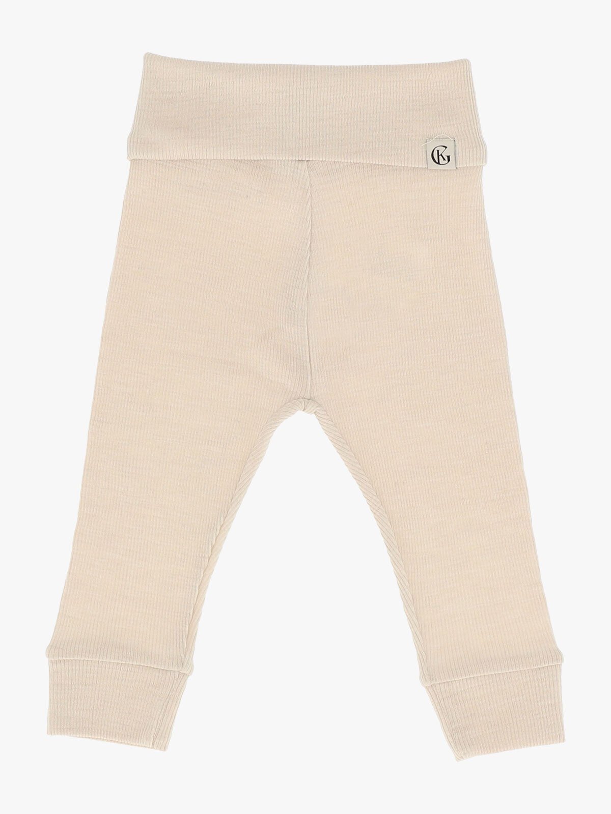 Denne babybuksen er i et herlig ribbestrikket materiale, som vil oppleves mykt, behagelig og pustende. Den ribbestrikkede kvaliteten gir god stretch og super holdbarhet vask etter vask. Buksen har et ekstra høyt liv som kan brettes etter som babyen vokser. Ingen harde strikk eller unødvendige detaljer for myke babymager. Kombiner gjerne med Billie Ullbody til baby for et komplett antrekk!